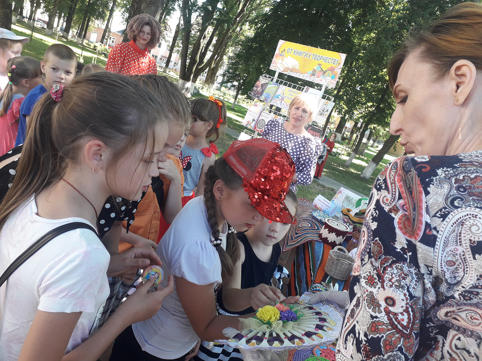 Центральная и детская библиотеки приняли участие в работе игровой площадки «Творчество без границ» на празднике детства и творчества возле Районного дома культуры. |