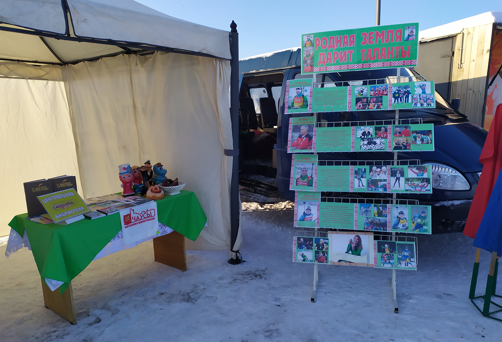 На лыжероллерной трассе прошел областной зимний праздник "Областная лыжня-2021", в котором приняла участие центральная библиотека. Была представлена фотовыставка "Родная земля дарит таланты" и выставка-продажа магазина "Гасцінец+". |