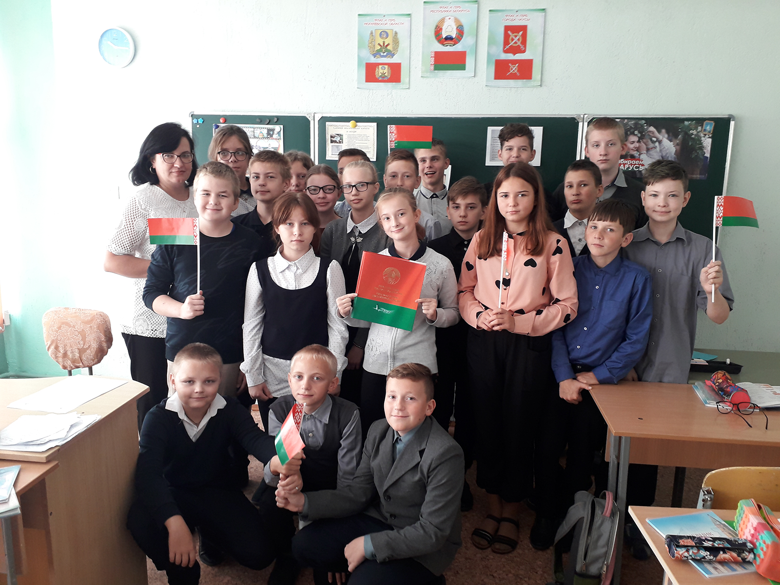 Детская библиотека провела для учащихся 7 класса тематическую беседу «Из истории белорусского флага». Библиотекарь рассказала о символах нашей страны.
