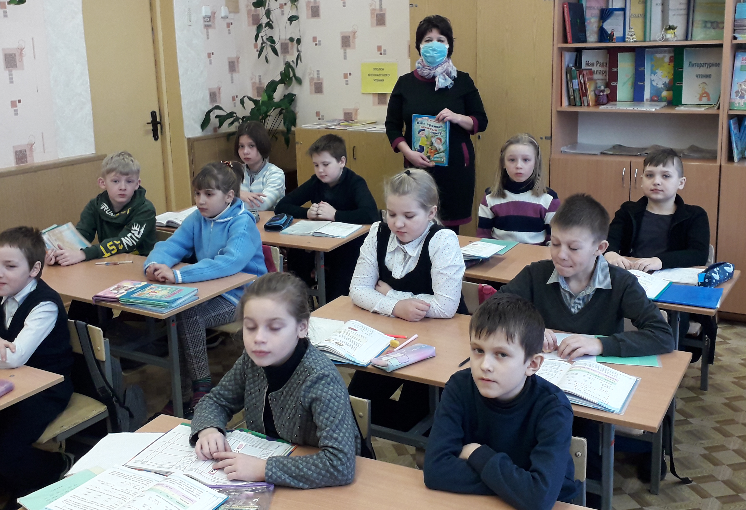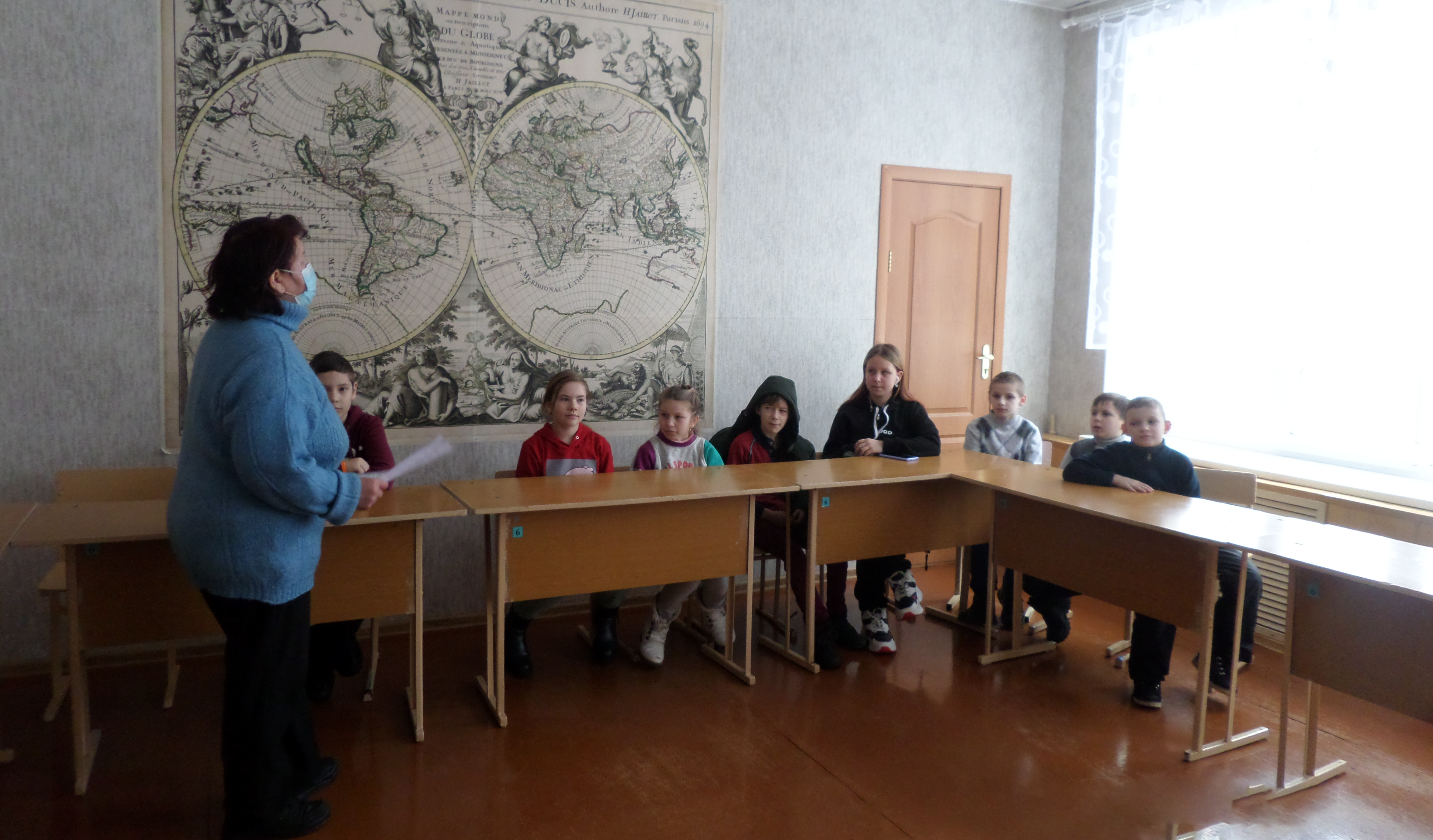 В школе №1 библиотекарь отдела обслуживания и информации провела информационный час «Поклонимся огню его сердца», посвященный творчеству белорусского художника. Начался урок с рассказа библиотекаря о жизни и творчестве Михаила Андреевича Савицкого. В основе произведений военной тематики - личные впечатления о поступках фашистов.