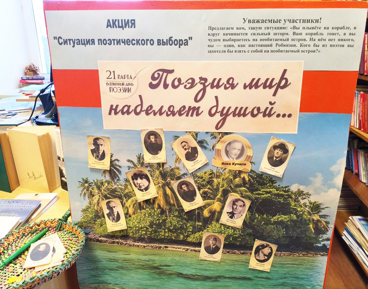 Суть акции была проста: каждому читателю предлагалось представить себя на необитаемом острове – в условиях полного одиночества, оторванности от привычного мира. В этой ситуации нужно было сделать выбор: выбрать одного поэта, чьи произведения он бы взял с собой.